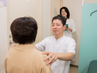 噛み合わせが悪いと、肩こりや首の痛みの原因になるって聞いたことありませんか?当院では入れ歯を作る前に、整体の先生が全身のゆがみ・バランスをチェック。全身に負担のかからない入れ歯作りを行っています。