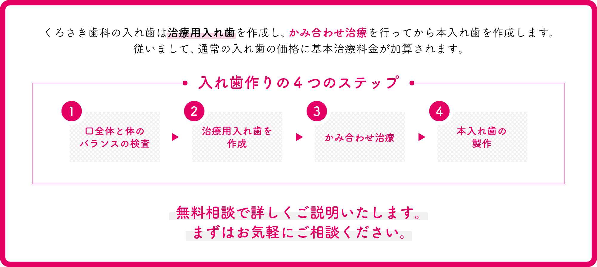 より快適な本入れ歯にするため、気になったことはお気軽にお伝えください。