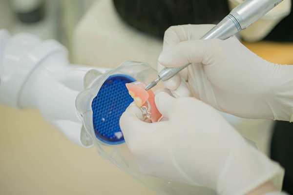 お口や噛み合わせの型取り、歯や歯茎の色の相談などの工程を踏んで、入れ歯を製作します。